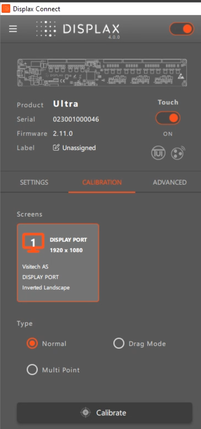 If you are using a single Displax TILE Pro unit, the calibration process is straightforward and closely mirrors the procedure used for a standard Displax Skin. You will use the Displax Connect software to align the touch sensor with your operating system's display coordinates.