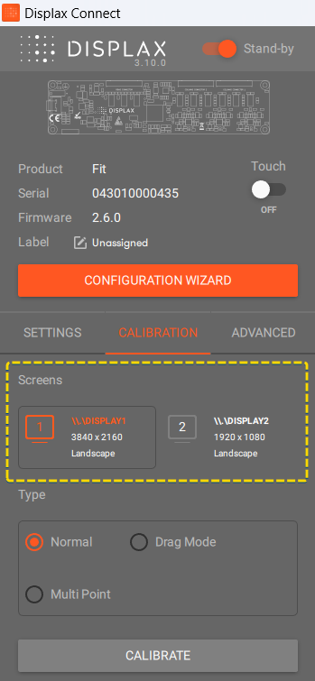 When multiple monitors are connected to your system, you can use DISPLAX Connect to choose which display will show the calibration screen. This ensures that the calibration targets appear on the correct monitor before you begin.