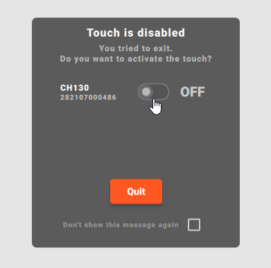 The popup includes a toggle that allows you to immediately re-enable touch before exiting the application.