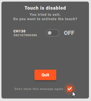 “Popup alert when closing the application: ‘Touch is disabled’”