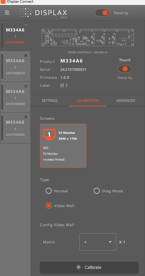 DISPLAX Connect includes a dedicated Video Wall Calibration feature. This mode automates the creation of calibration areas, significantly speeding up the process of configuring multiple TILE Pro units for a unified video wall or interactive table.